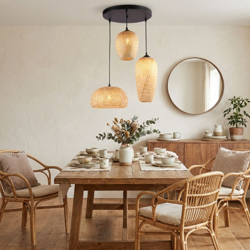 Trisa" triple wicker pendant lamp - 3xE27