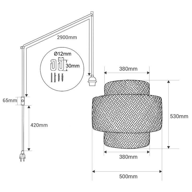 - Flexible installation: Includes adjustable cable with two decentralizing hooks for different configurations. Incorporates switch and Schuko socket, ideal for spaces without a light point nearby. Available in black, white and natural rope.