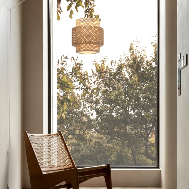 The "Onna" lamp is handmade in wicker, taking care of every detail to achieve a product with high quality finishes. Its interweaving allows to create a beautiful play of light and shadows with the passage of light, giving rise to warm and cozy environments.