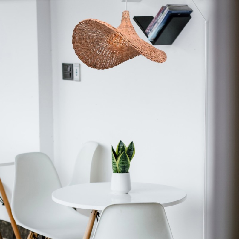Its original design in the shape of a woman's hat is the detail that stands out most in this pendant lamp, as elegant as it is casual.