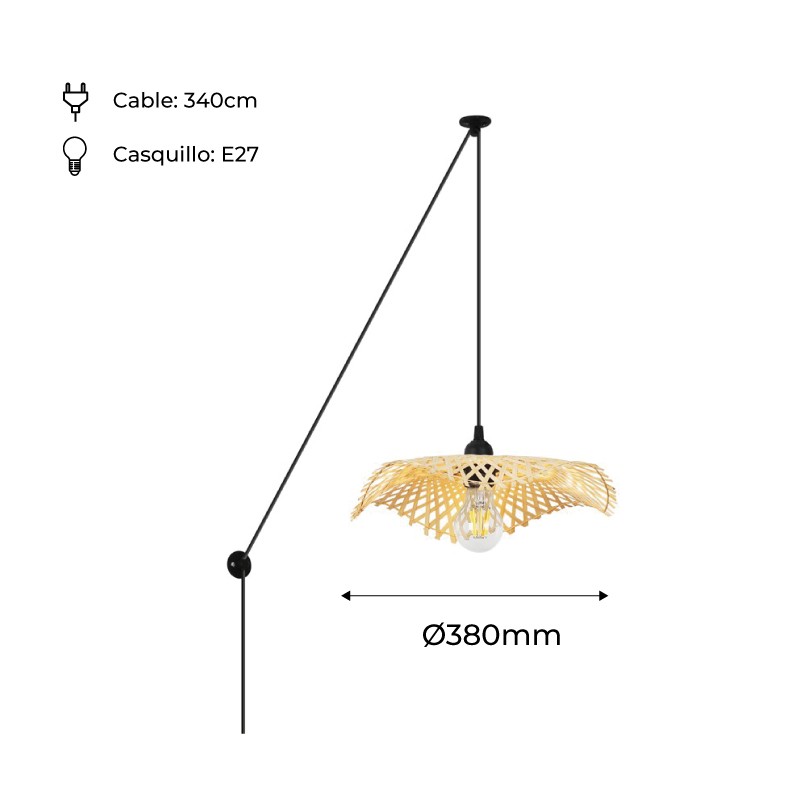 Lamps with switch, cable and plug that allow to regulate the desired height very easily, with a maximum length of 3400cm. The lampshade material comes from rattan, which offers great advantages of corrosion resistance, optimal heat dissipation, high durability and optimal heat dissipation.