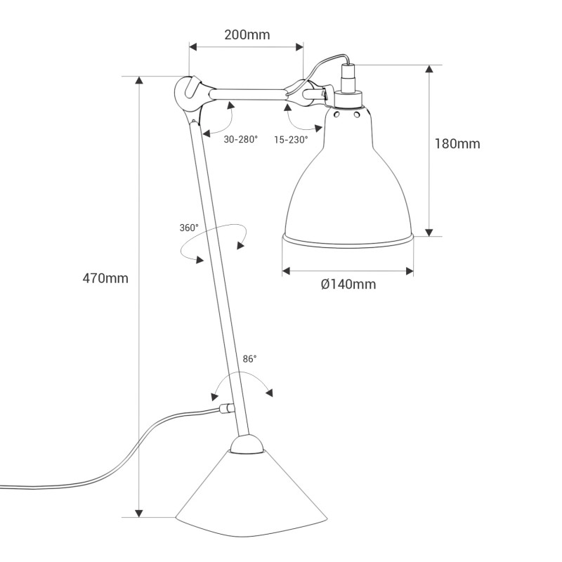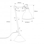 - Articulated format: It has a fixed base and an articulated arm with an adjustment point that allows to tilt the parts and the lampshade. The shade is 360° adjustable.