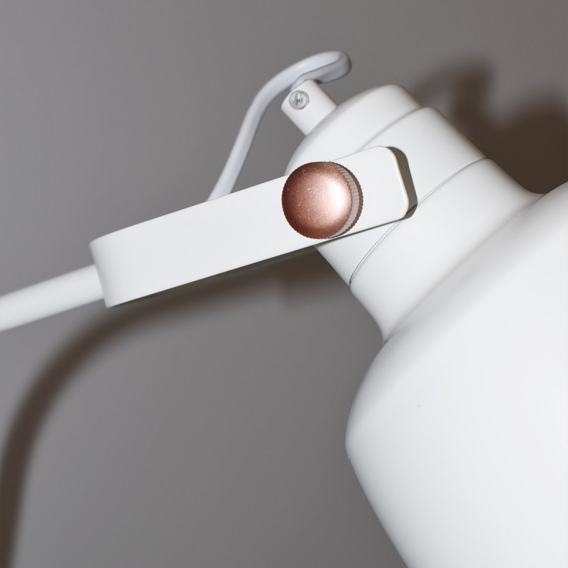 All the Kukka family of lamps have an adjustable head with two decorative reddish bronze colored screws that match with everything. It is only necessary to adjust it to the desired angle.