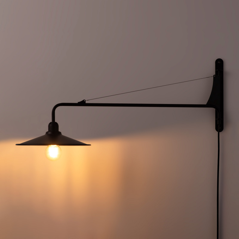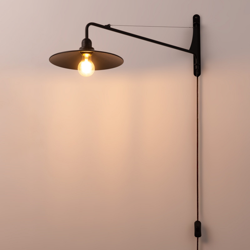 This wall lamp stands out for its pivoting design and high quality materials. Its retro-industrial aesthetics and careful finishes give it personality and versatility.