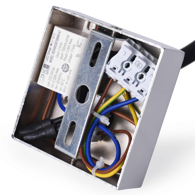 It incorporates high quality COB LED chips that emit a warm white light (2800K) at an opening angle of 30°.