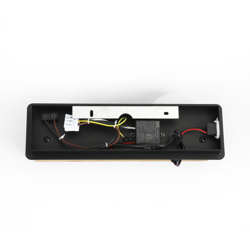 The "Nonna" wall lamp stands out for its contemporary aesthetics and advanced functionality, ideal for integrating into any modern environment. It features a base made of aluminum in black finish and an elegant natural wood shelf with high quality finishes.