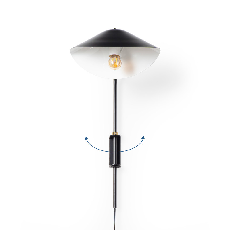 This wall light combines refined design and functionality in a luminaire of balanced aesthetics, perfect for living rooms, bedrooms, corridors or reading corners that require warm, well-directed lighting.