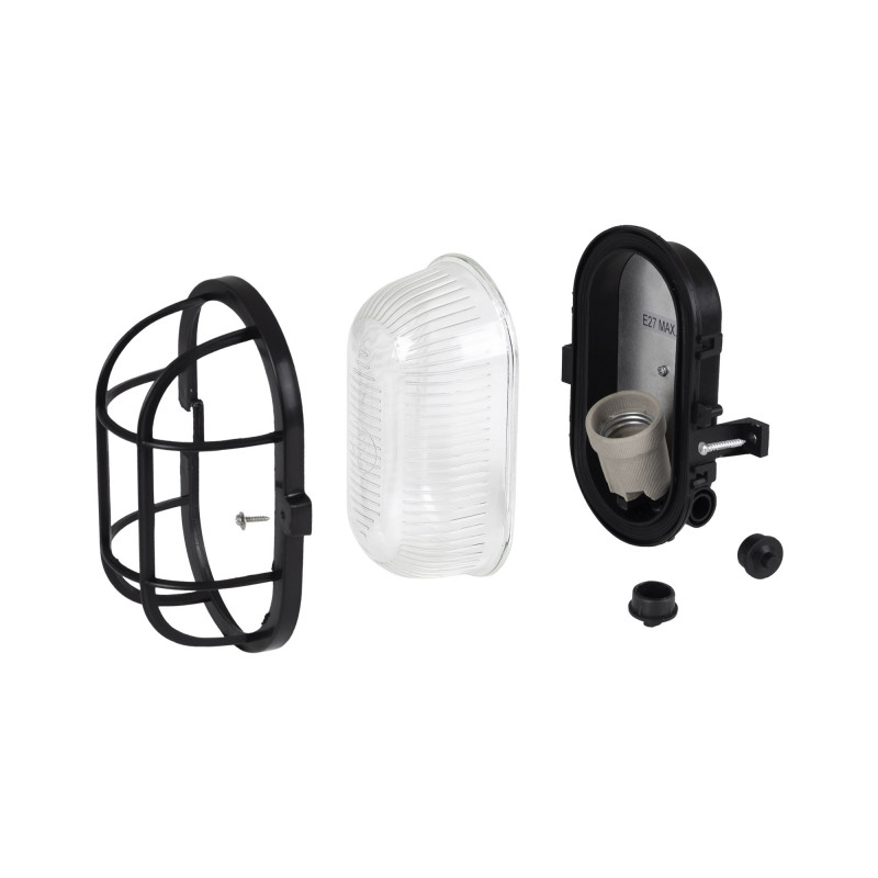 Perfect for outdoors, this polycarbonate wall light combines durability and functional design. Compatible with E27 bulbs with a maximum diameter of Ø60mm, it is ideal for illuminating gardens, garages, terraces, facades, corridors or entrances.