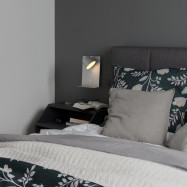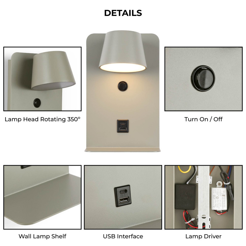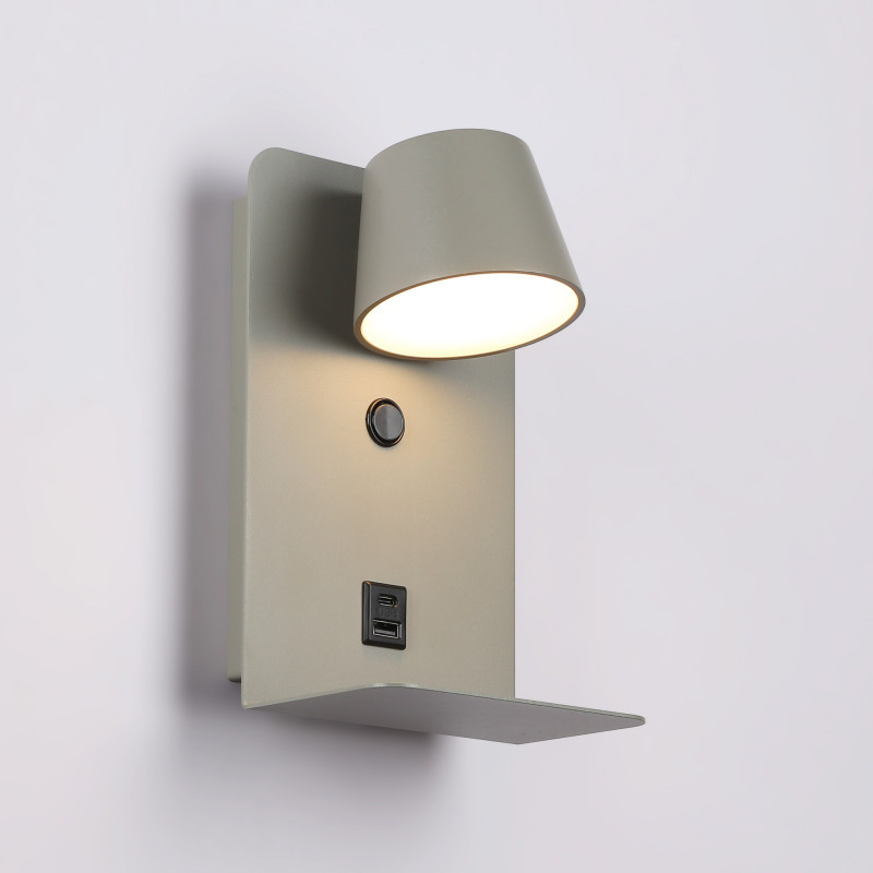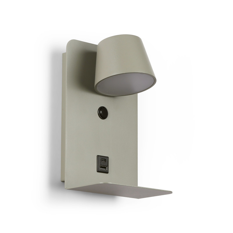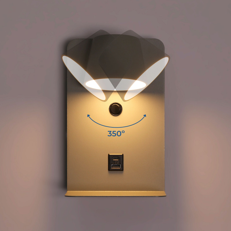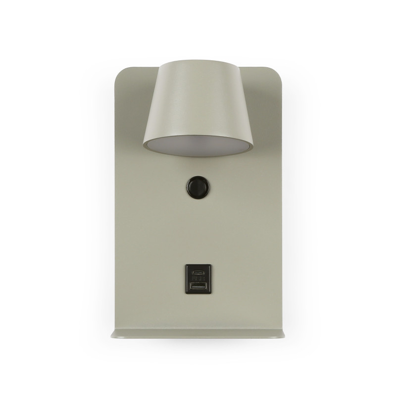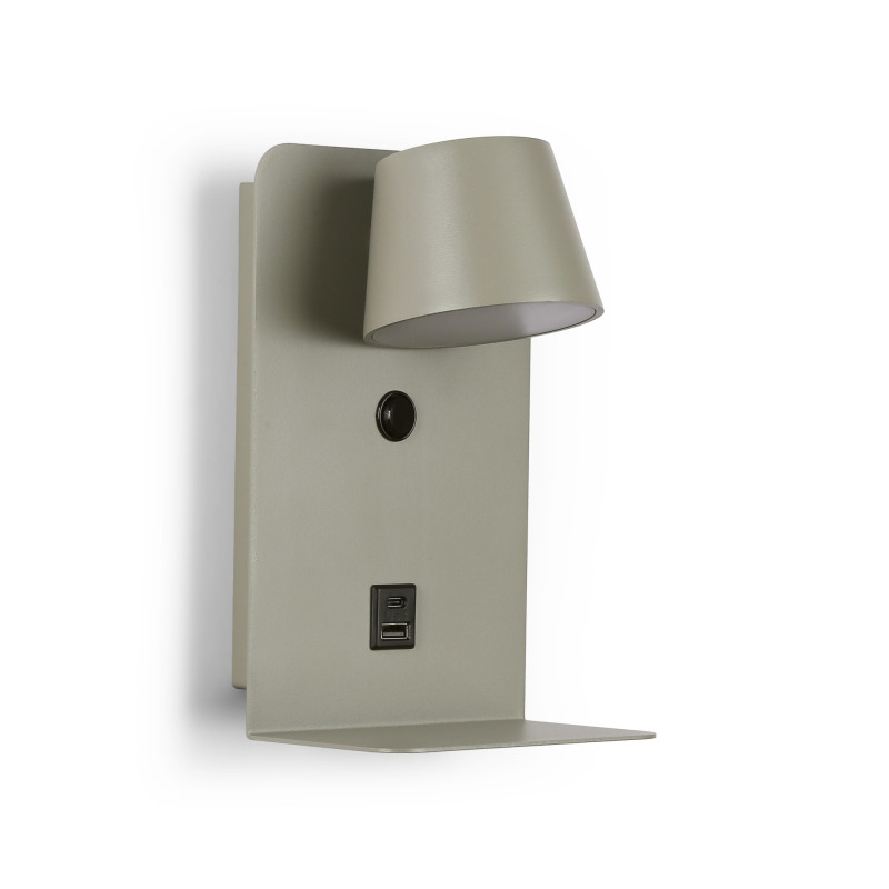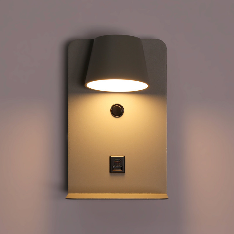 With a Nordic style design, this wall lamp integrates easily into modern environments, combining aesthetics with practical solutions for lighting and charging devices.