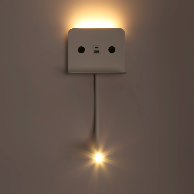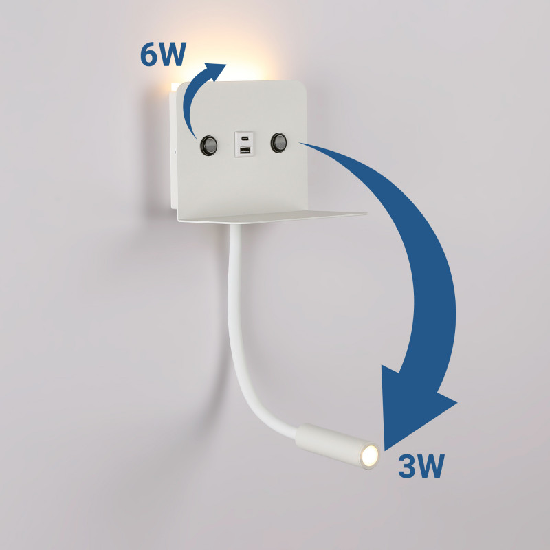 Wall reading lamp "SLANGE 2" - 3W + 6W - USB port + USB-C