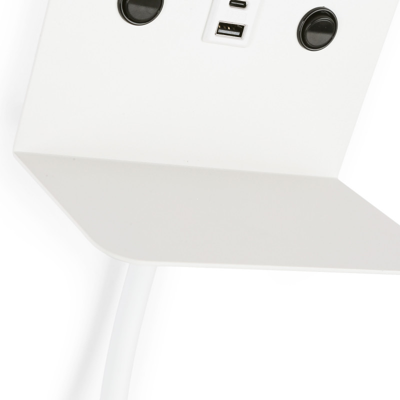 With a Nordic style design, this wall lamp integrates easily into modern environments, combining aesthetics with practical solutions for lighting and charging devices.