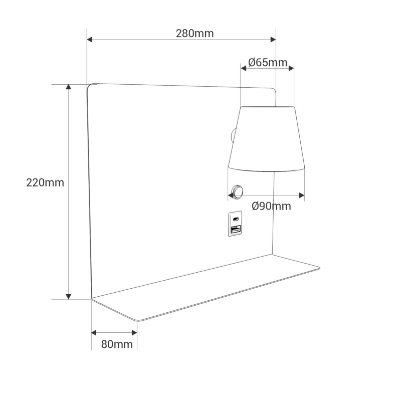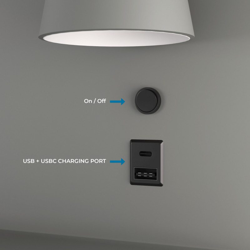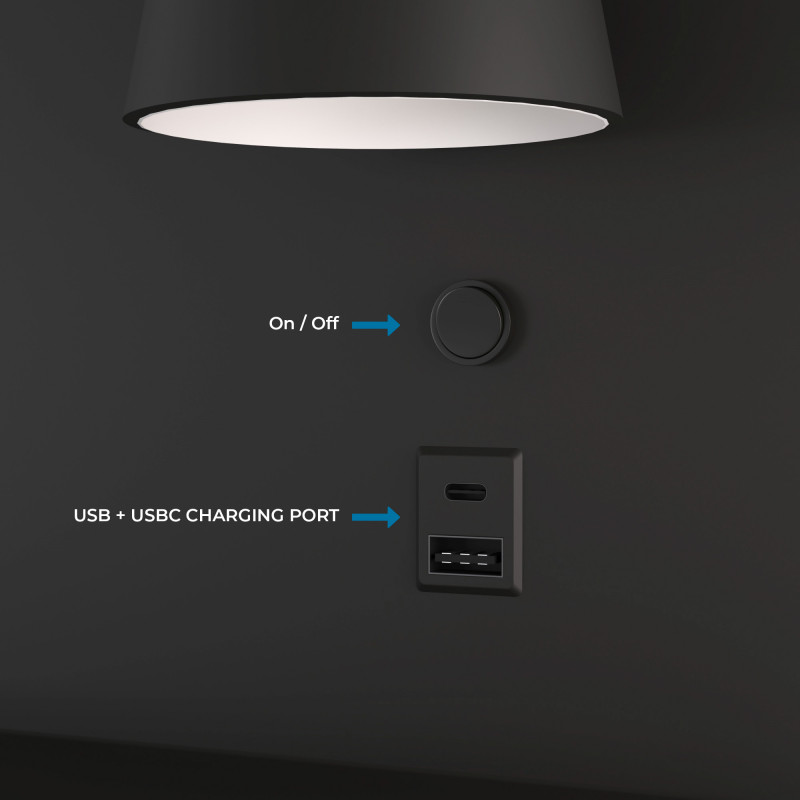 Wall reading light with USB port + USBC "Baskop" - Available left and right light.