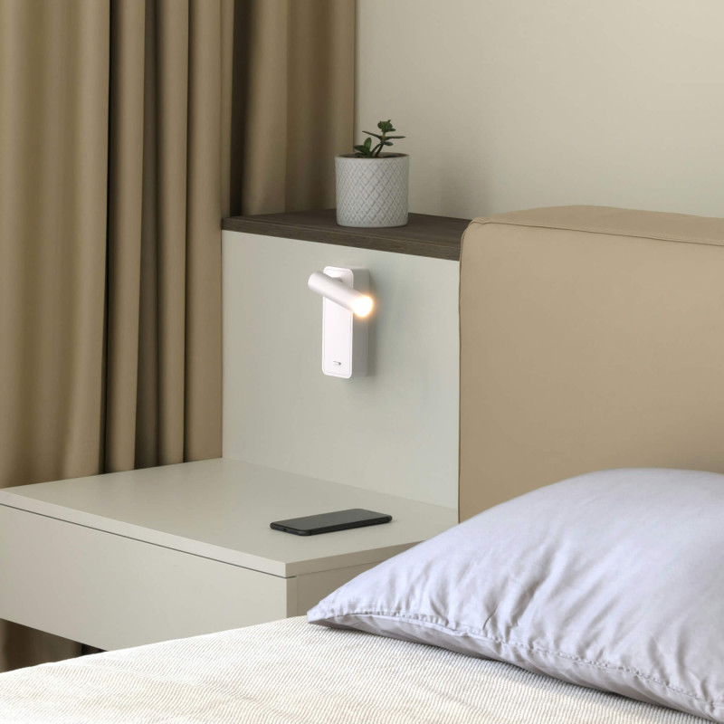Perfect for bed headboards, this LED wall light combines contemporary design with maximum practicality.
