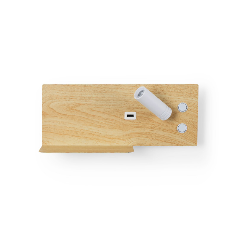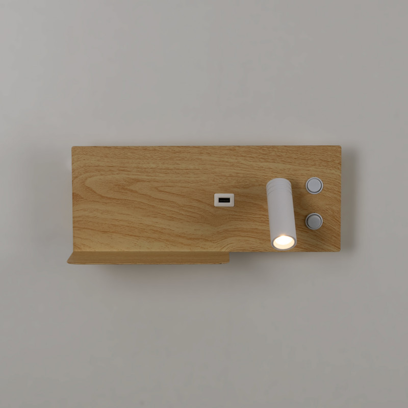 The adjustable spotlight is located on the right side of the wall light (Ref: LN1512-USB with spotlight on the left, see related products).