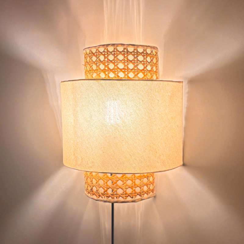 - Decorative lighting: Wicker and fabric shade allows light to filter through warmly and evenly, creating a cozy atmosphere.