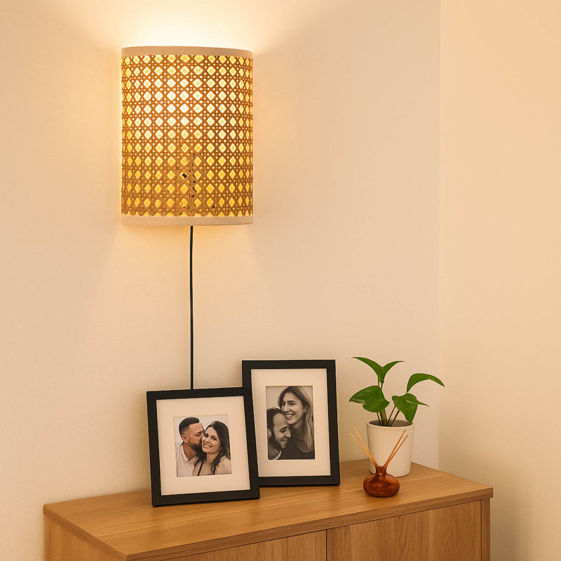 Wicker wall lamp "BERGIN" - E27 - Switch and plug