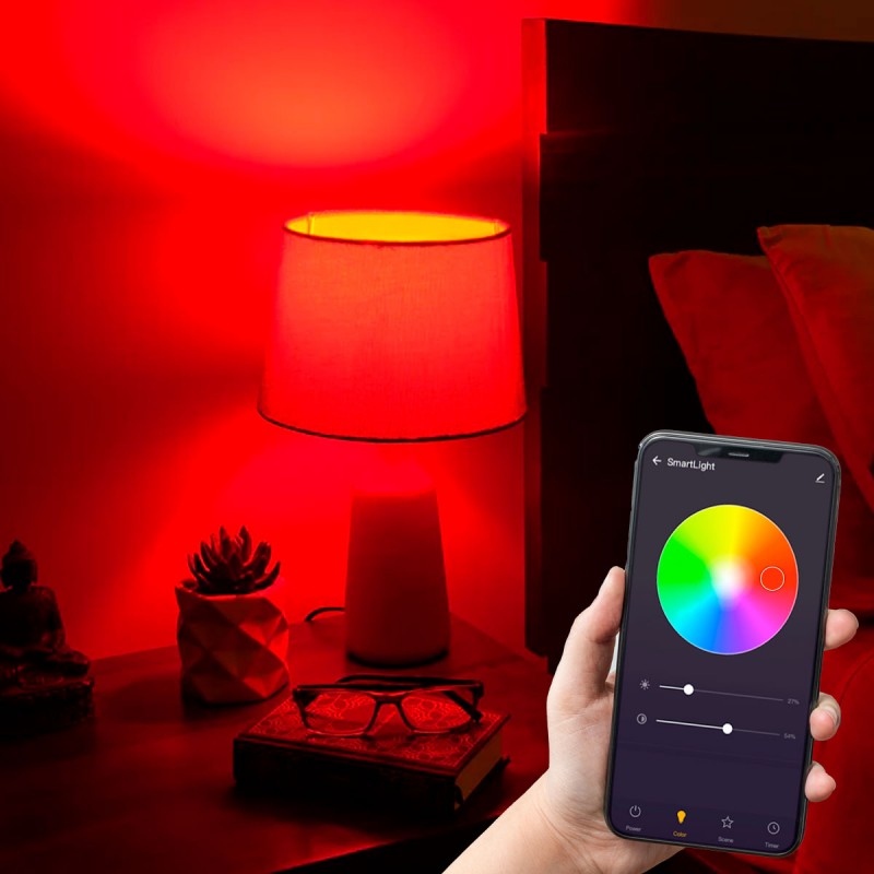 Use your smartphone to remotely control your smart bulb anywhere, anytime. With multiple options: turn lights off or on, dim or brighten, set a time for automatic shut off, etc. For example, you can say, "Alexa, change the lights to yellow" or "Ok Google, turn on the living room lights".