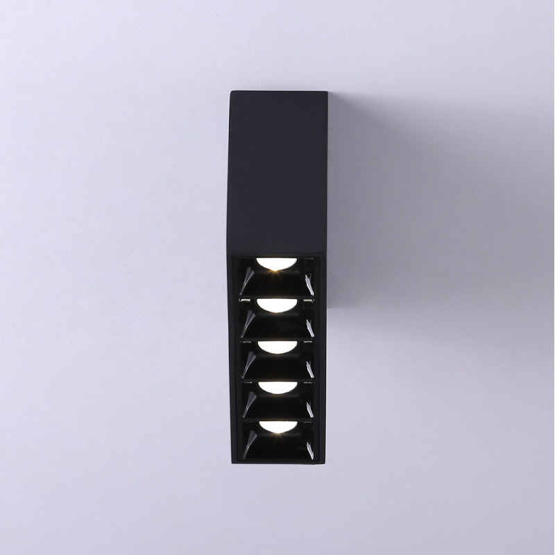 Linear surface mounted LED luminaire composed of 5 spotlights with a total power of 10W. Housing in white or black color.
