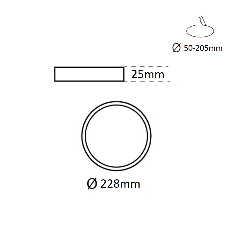 This downlight stands out for its sliding fixing springs, which allow it to adjust to holes with a variable diameter between 50 and 205mm.