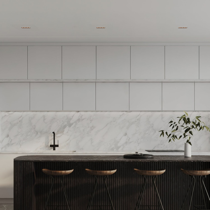 This linear LED spotlight is designed to achieve continuity with the installation surface, without edges or visible spaces. This results in lighting that is completely integrated into the environment, with uniform and clean finishes.