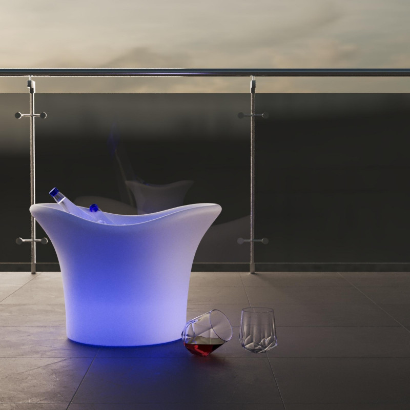 Luminous ice bucket ideal for adding a modern and stylish touch to any space. Adjust the lighting with soft or vibrant tones.
