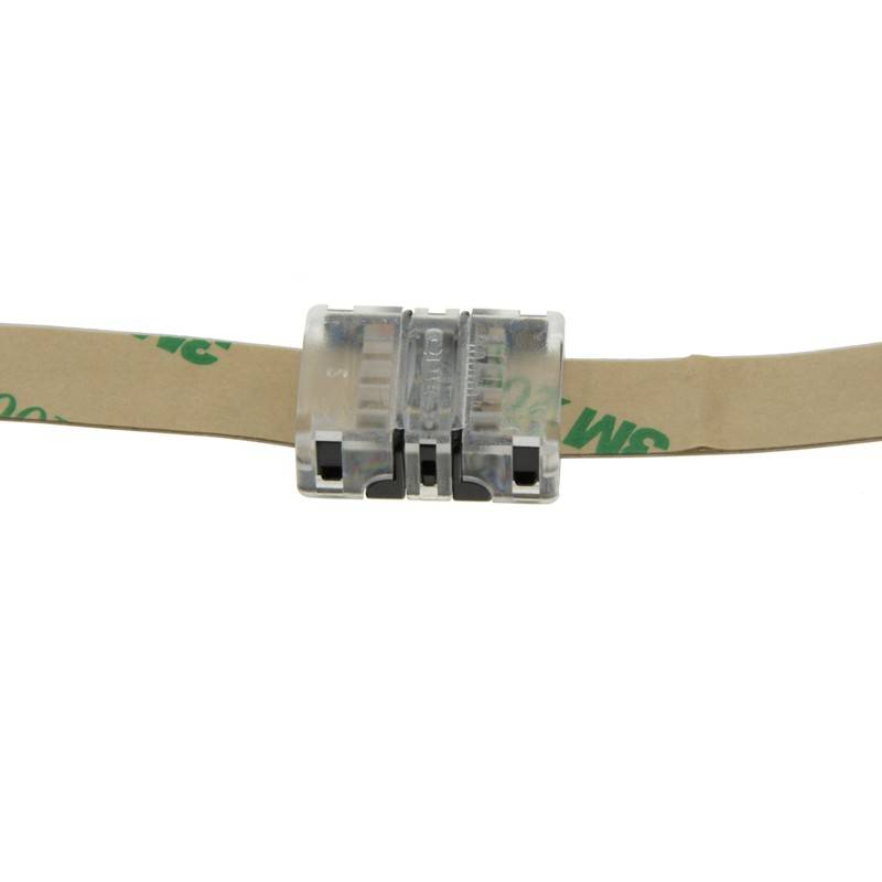 4 pin connector for RGB LED strip, with punching grip, stable and durable. It is suitable for indoor installation (IP20). Valid for 10mm PCB RGB IP20 LED strips, without sheath, and Ø0.34-0.75mm2 cables.