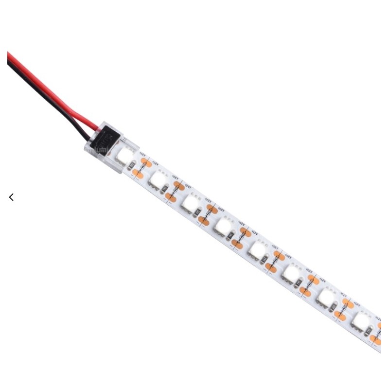 LED strip to cable connector 2 pin (single color), of small dimensions to fit inside aluminum profile. Easy installation, suitable for indoor installations (IP20). Suitable for IP20 LED strips of PCB 10mm without sheath and cables up to Ø0,5mm2. Supported voltage 3-24V. Supplied without wiring.