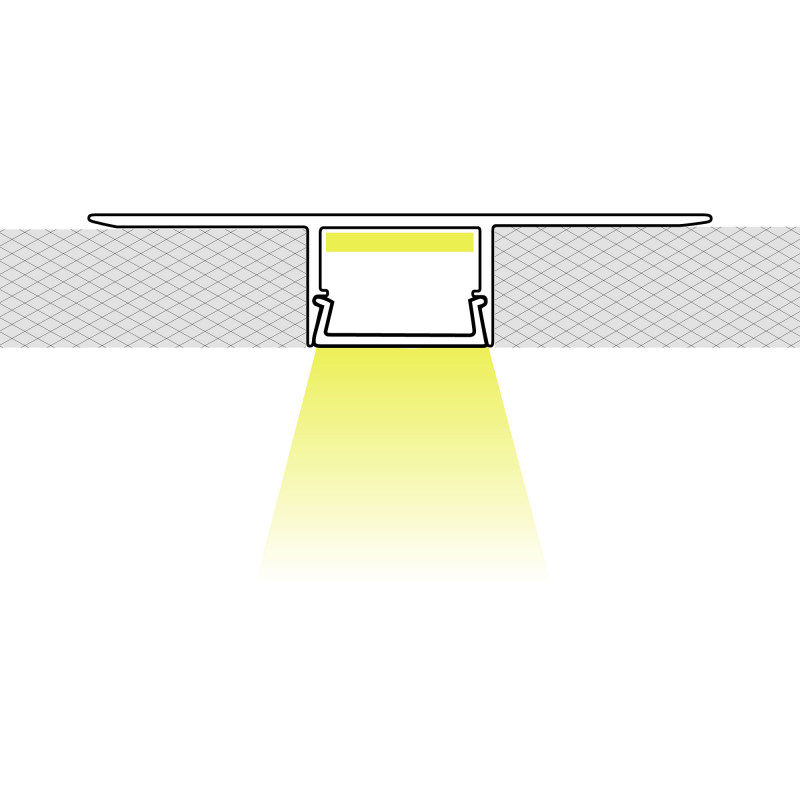 This aluminum profile is designed for recessed installation in plasterboard, achieving a fully integrated linear lighting without visible frames(trimless). It is ideal for modern and minimalist lighting projects. Compatible with LED strips up to 15mm.
