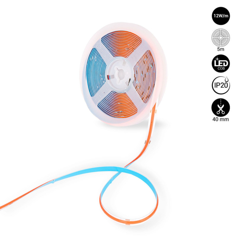 COB LED Strip 24V DC - 12W/m - Colours - 8mm - IP20 - 5m roll - Cut every 4 cm