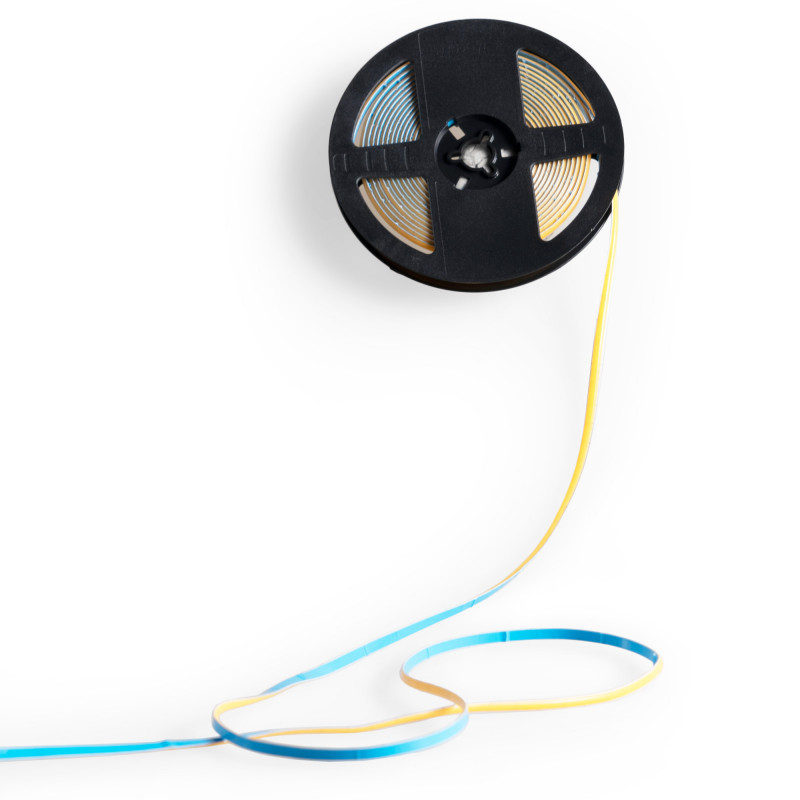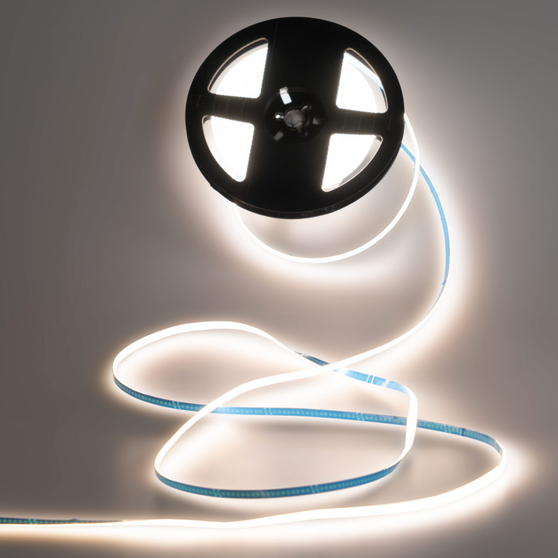 This LED strip incorporates COB technology, which allows it to emit a continuous light, without visible points, especially recommended when homogeneous illumination is desired, to work with reflective surfaces or to use transparent diffusers.