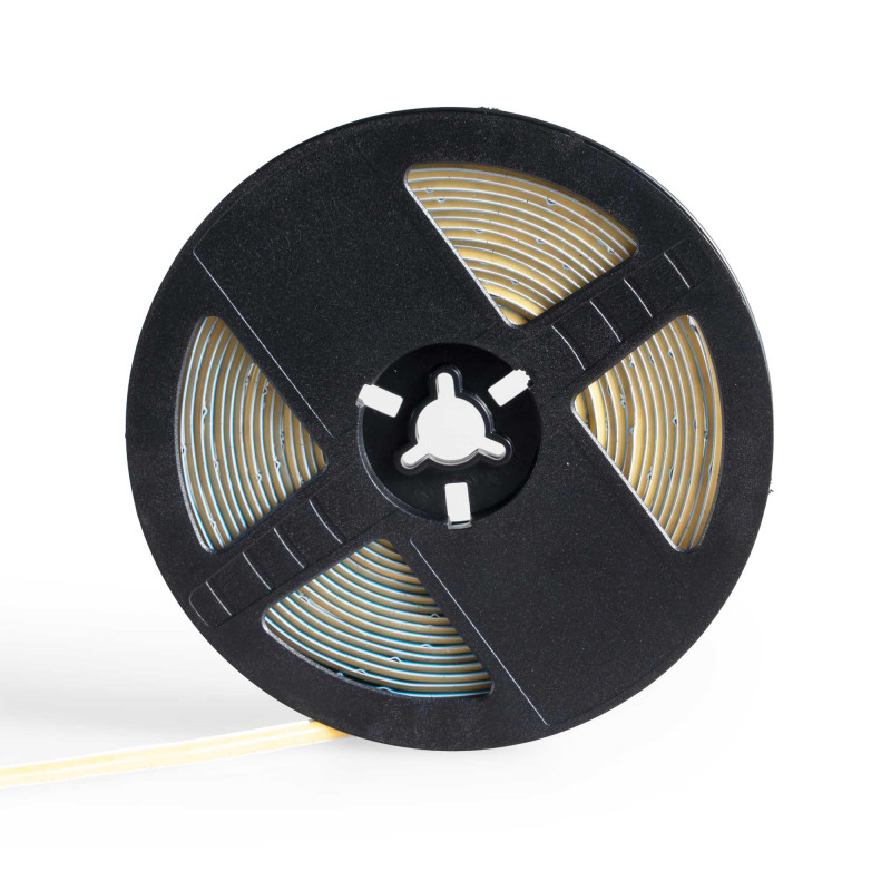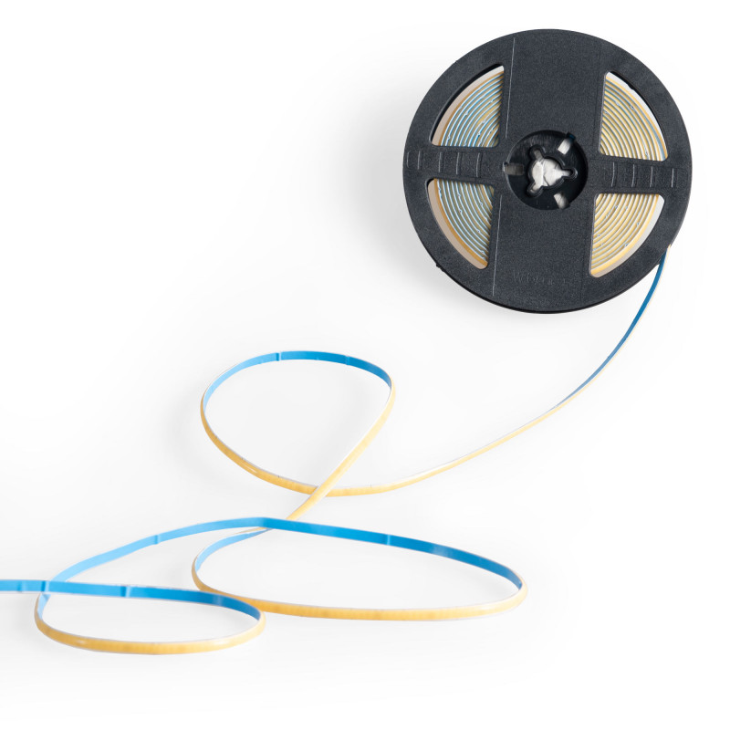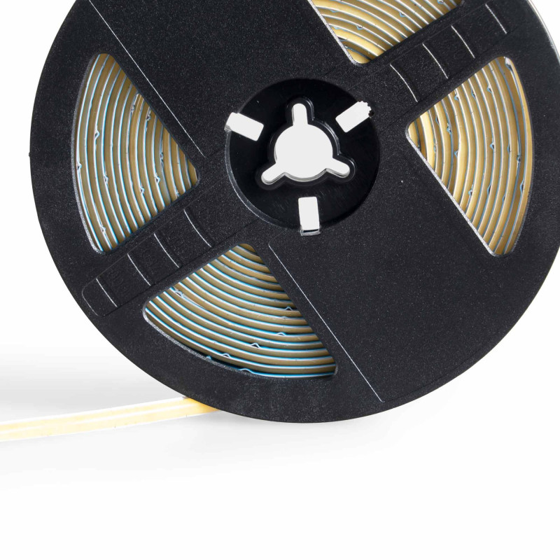 This LED strip incorporates COB technology, which allows it to emit a continuous light, without visible points, especially recommended when homogeneous illumination is desired, to work with reflective surfaces or to use transparent diffusers.