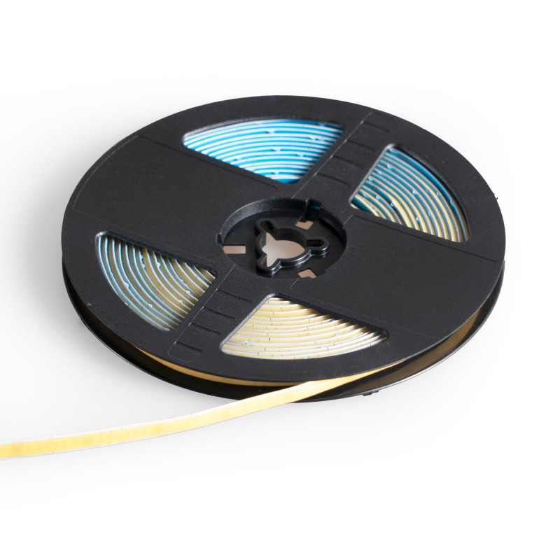The COB 24V DC COB LED strip is characterized by bright and uniform illumination, with no shadows and no visible light spots, unlike traditional LED strips.