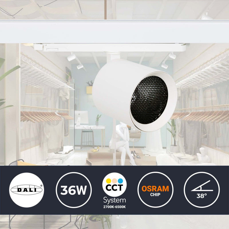LED spotlight for 3-phase track - 36W - DALI - CCT - CRI90 - OSRAM chip
