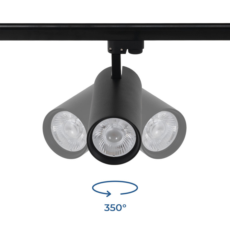 This LED track spotlight stands out for its reliability and excellent color rendering, ideal for highlighting products or details in commercial spaces.