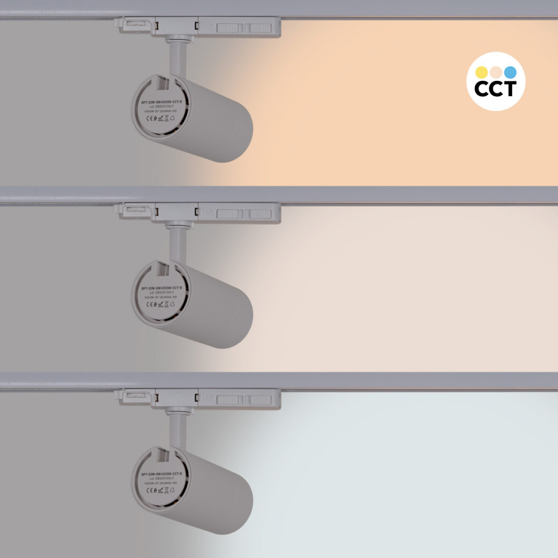 LED Spotlight for three-phase track - Adjustable power + ZOOM: 15W/20W/25W - CCT