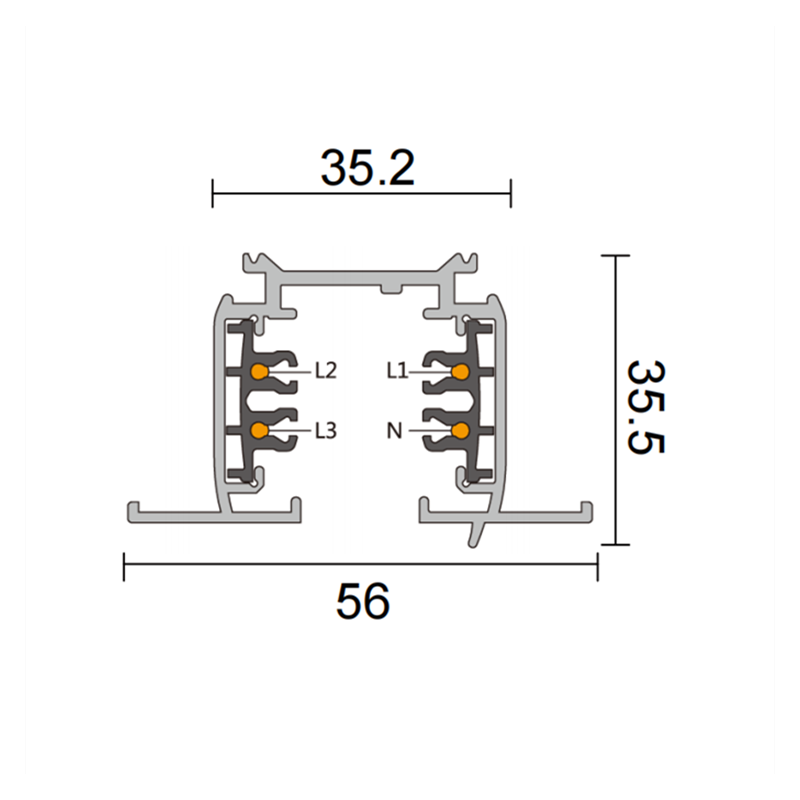 Three-phase recessed track bar of 2 meters. Necessary mounting hardware and accessories are included, and the rail can be cut to length. The design of the recessed rail includes two exterior flashings that act as trims, concealing any defects and imperfections that may result from the cut. Once assembled, the track is flush with the surface, protruding a maximum of 3 mm.