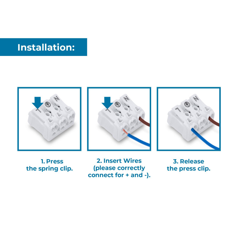 Fast and safe connection terminal for 0.5 to 2.5mm cables.