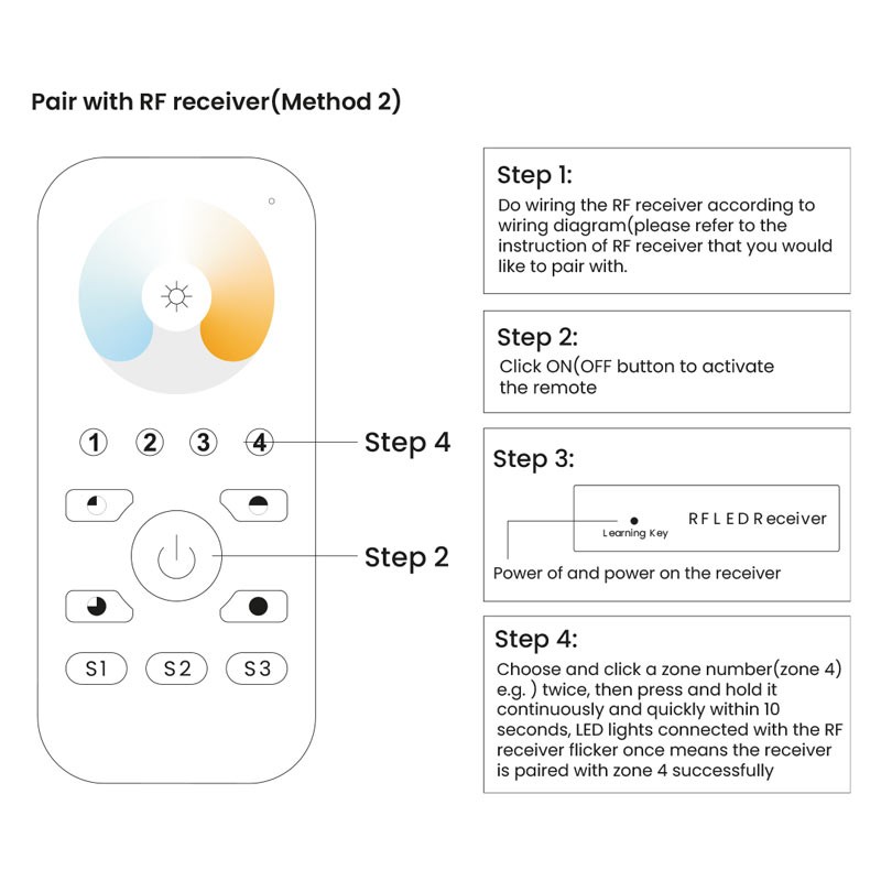 CCT RF touch dimmer control for led lighting up to 4 zones - SUNRICHER - Perfect RF
