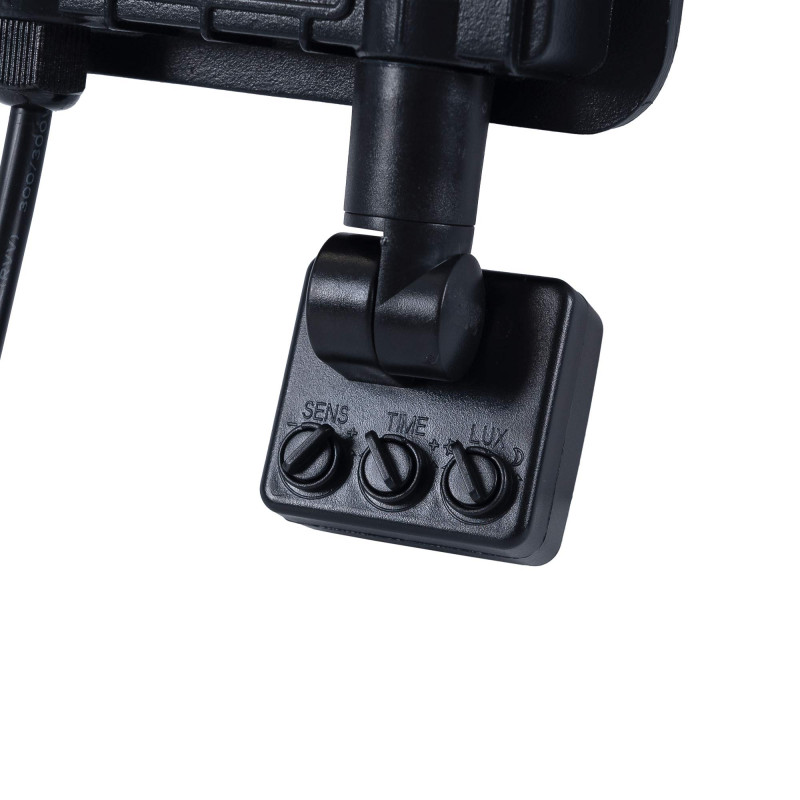 ✔ O utdoor light level: adjusts the level of ambient light required to activate the projector (2-2000 Lux). A: when set to the sun position, the sensor operates all day; B: when set to the moon position, the sensor only activates the projector at night or when the ambient lighting is insufficient.