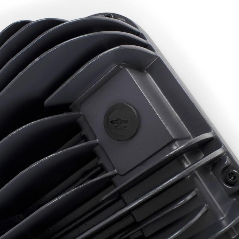 Due to its efficiency and durability, it is an ideal product for installation in areas that require many hours of lighting. In addition, its asymmetrical lens made of high-strength polycarbonate optimizes light distribution from elevated locations, providing a focused beam directed towards the ground, with less glare and light pollution than symmetrical floodlights.