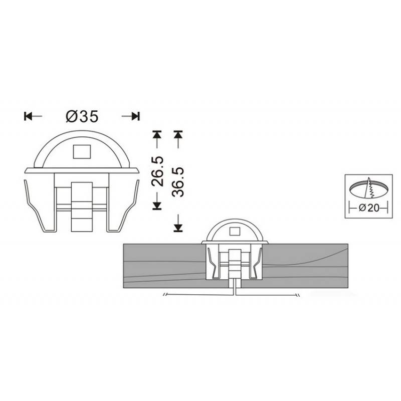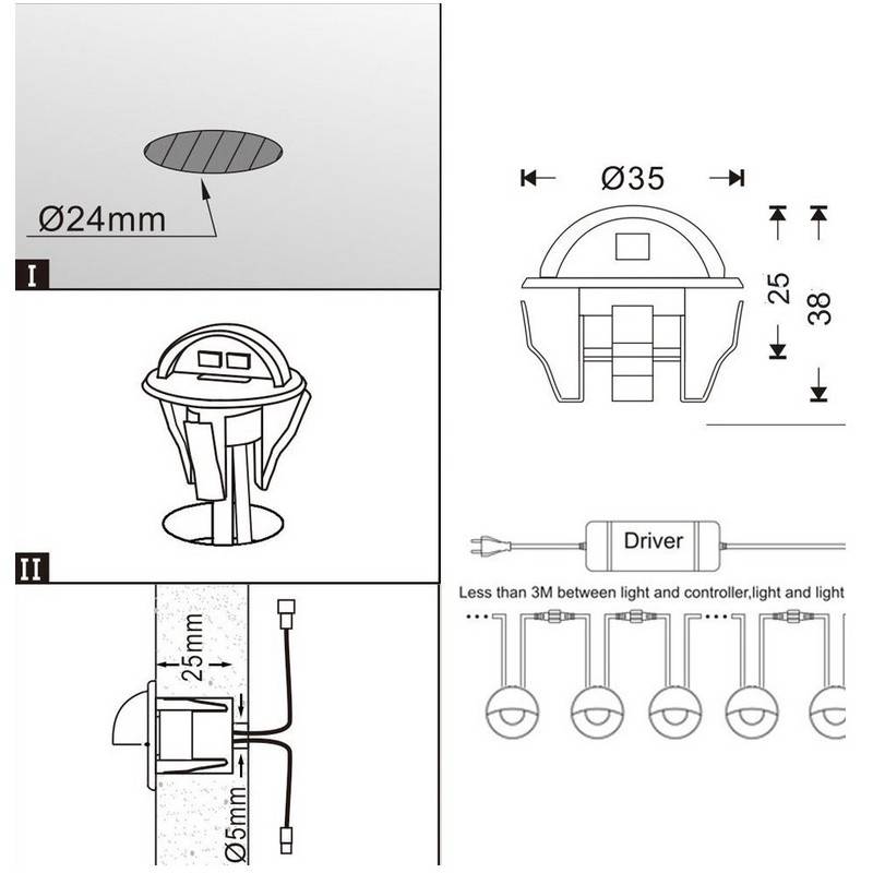 KIT 6 LED spotlights for stairs 0,4W Ø35x24mm IP67 (Complete kit ready to use).