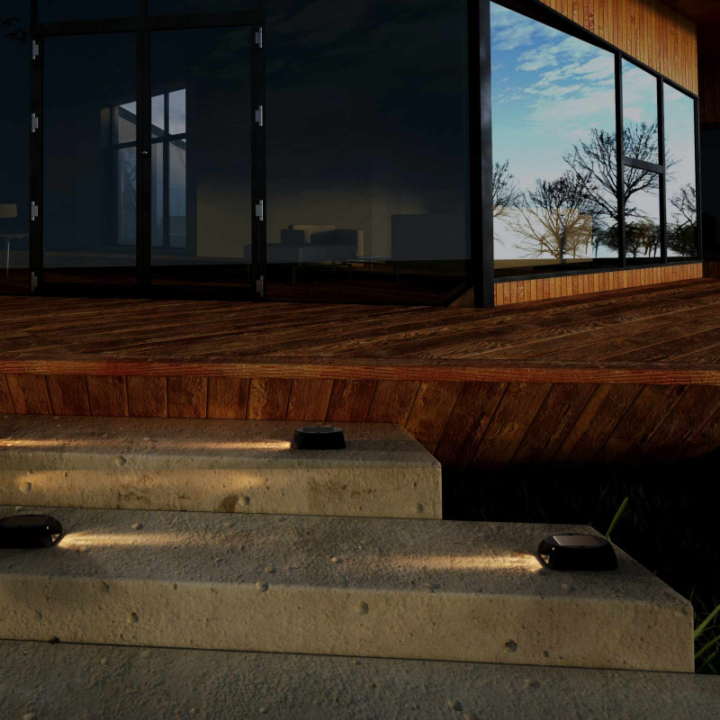 This solar light is designed to be installed on outdoor stairs or pavements, providing a discreet and autonomous signaling. It is ideal for marking paths and illuminating entrances, terraces or gardens, without the need for electrical connection.