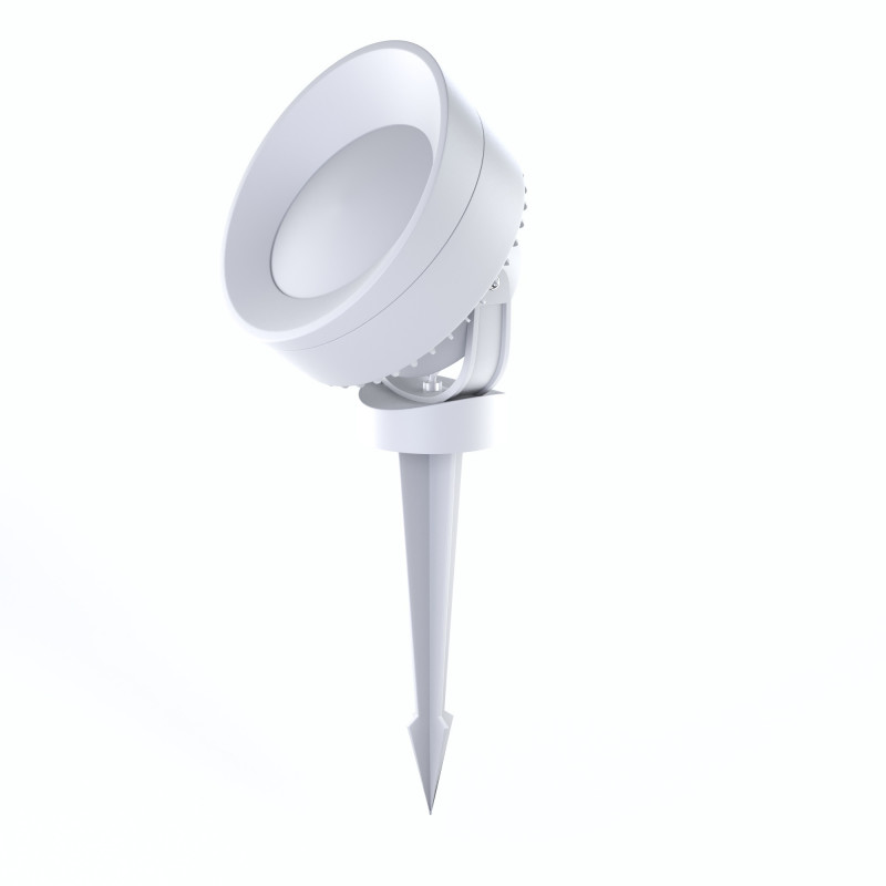 Estaca LED con pincho fabricada en resina resistente a golpes, corrosión y rayos UV. Cuenta con una visera frontal que ayuda a controlar el deslumbramiento y dirigir la luz. Se instala clavándola en tierra, césped o arena.