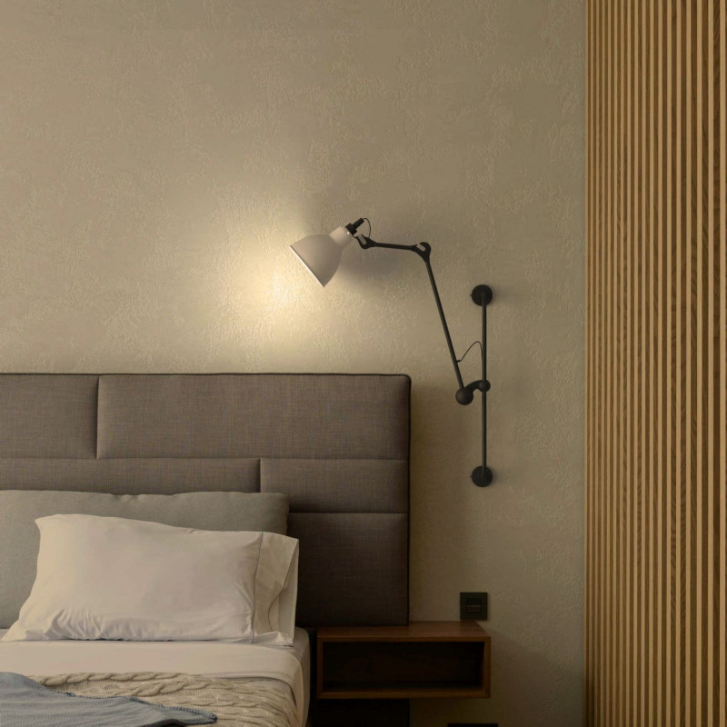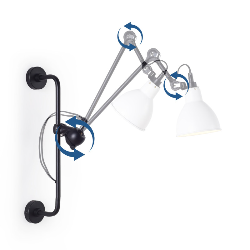 - Αρθρωτή μορφή: Διαθέτει σταθερή δομή για τοποθέτηση στον τοίχο και αρθρωτό βραχίονα με τρία σημεία ρύθμισης που επιτρέπουν την κλίση των τεμαχίων και του αμπαζούρ. Το μακρύτερο τμήμα μπορεί να περιστραφεί κατά 360°.