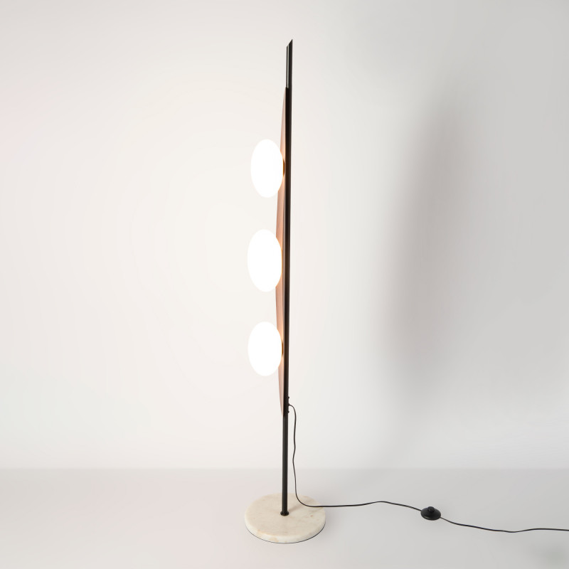 - Μαρμάρινη βάση: Κυκλική βάση από φυσικό μάρμαρο μεγάλης σταθερότητας, η οποία δημιουργεί μια κομψή αντίθεση με το σώμα του φωτιστικού.