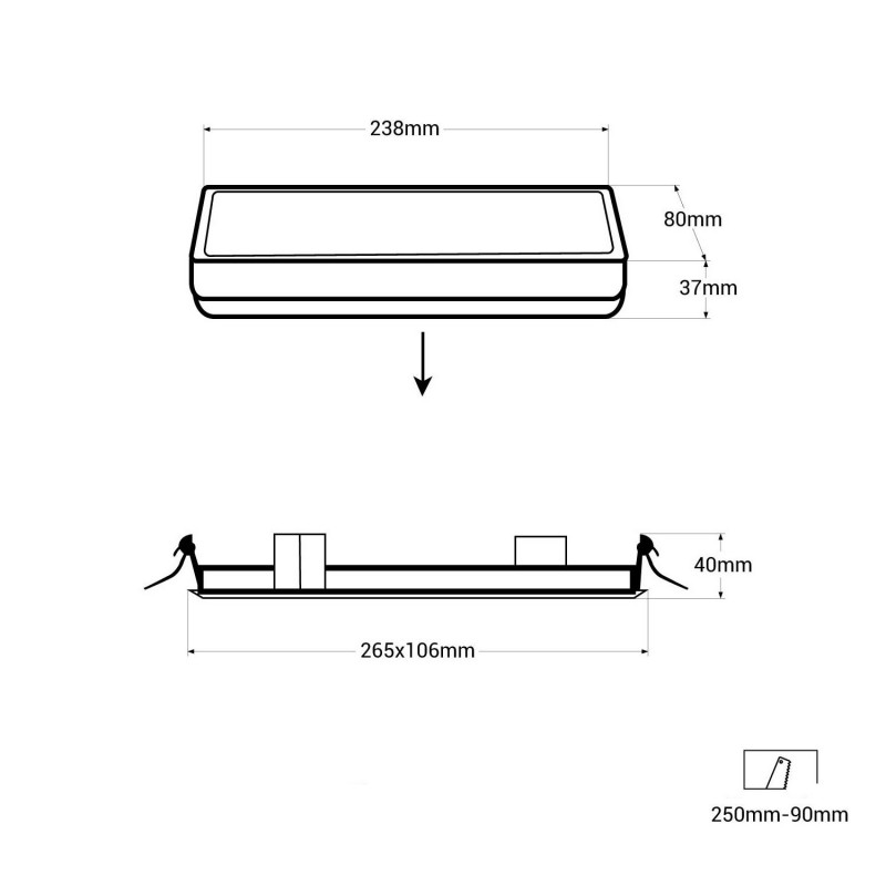 Επιφανειακό: Απαιτείται μόνο εγκατάσταση με τη σύνδεση της καλωδίωσης στον τοίχο ή την οροφή, απλά και γρήγορα. Το πλαίσιο του φωτιστικού για την τοποθέτηση σε εσοχή πρέπει να αφαιρεθεί πριν από την επιφανειακή τοποθέτηση.