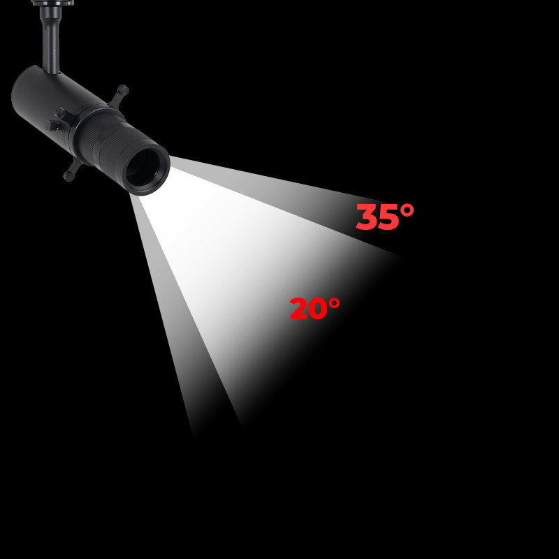 Μια ρυθμιζόμενη γωνία ανοίγματος φωτός μεταξύ 20° και 35° παρέχει πρόσθετο έλεγχο της ευκρίνειας και της εστίασης του φωτός. Αυτό διασφαλίζει ότι κάθε έργο τέχνης λαμβάνει τη σωστή προσοχή και φωτισμό, ανεξάρτητα από το μέγεθός του ή τις ιδιαίτερες λεπτομέρειές του.