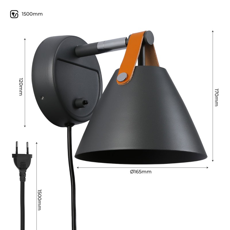 Δερμάτινο φωτιστικό τοίχου "Ellen" με καλώδιο και διακόπτη