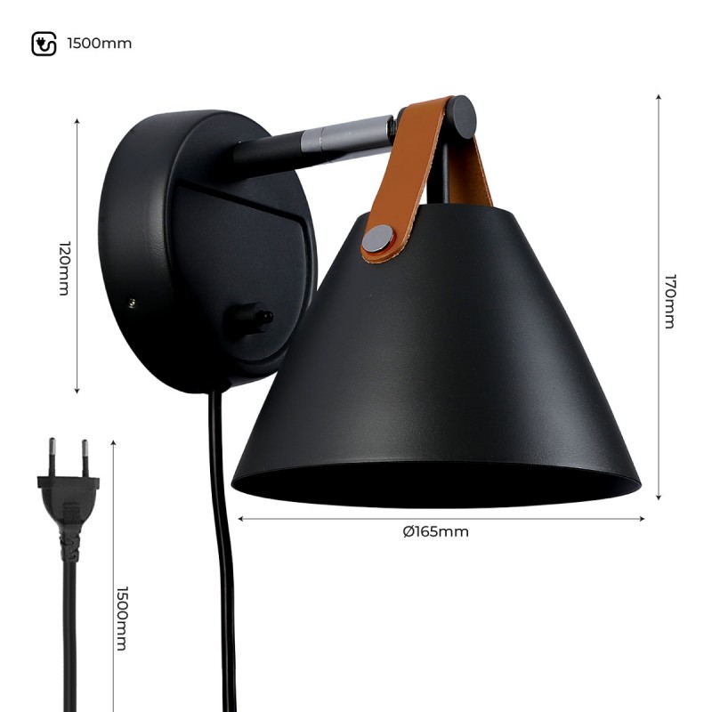 Δερμάτινο φωτιστικό τοίχου "Ellen" με καλώδιο και διακόπτη