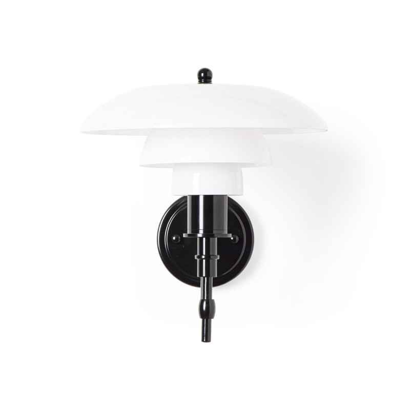Εξαιρετικά σχεδιασμένο φωτιστικό τοίχου με τριπλό σκίαστρο από οπάλιο γυαλί και βάση από αλουμίνιο.
